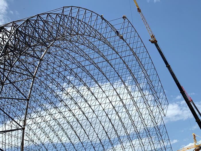 (2)网架加工前应对现场尺寸进行复测,确认无误后方可进行加工、安装;网架制作、运输、安装应遵守《空间网格结构技术规程》JGJ7-2010、《钢网架江都螺栓球节点》JG/T 10-2009、《钢网架江都螺栓球节点用高强度螺栓》 GB/T 16939-2016、《江都钢结构江都工程江都施工规范》 GB50755-2012、《江都钢结构江都工程江都施工质量验收标准》 GB50205-2020。